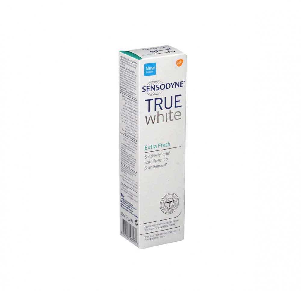 معجون أسنان سنسوداين ترو وايت بأقل درجة كشط بين أنواع سنسوداين المختلفةيخفف الألم الناتج عن حساسية الأسنانيساعد على استعادة لون أسنانك الطبيعييشكّل طبقة للحماية تساعد على منع تكوين البقع الجديدة