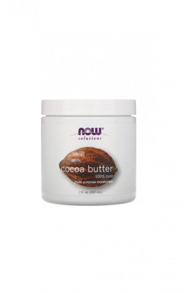 الحل: زبدة الكاكاو النقية 100% هي مستحضر ترطيب طبيعي بالكامل وهي آمنة للاستخدام حتى للبشرة شديدة الحساسية. غالبًا تُستخدم لترطيب البشرة الجافة وتحسن مظهر البشرة التي بها عيوب. في الحالة الطبيعية تكون زبدة الكاكاو صلبة في درجة حرارة الغرفة، وقد تختلف في اللون والقوام.