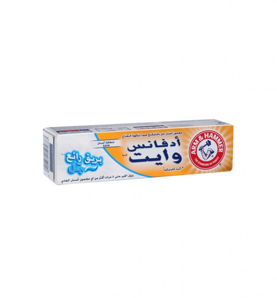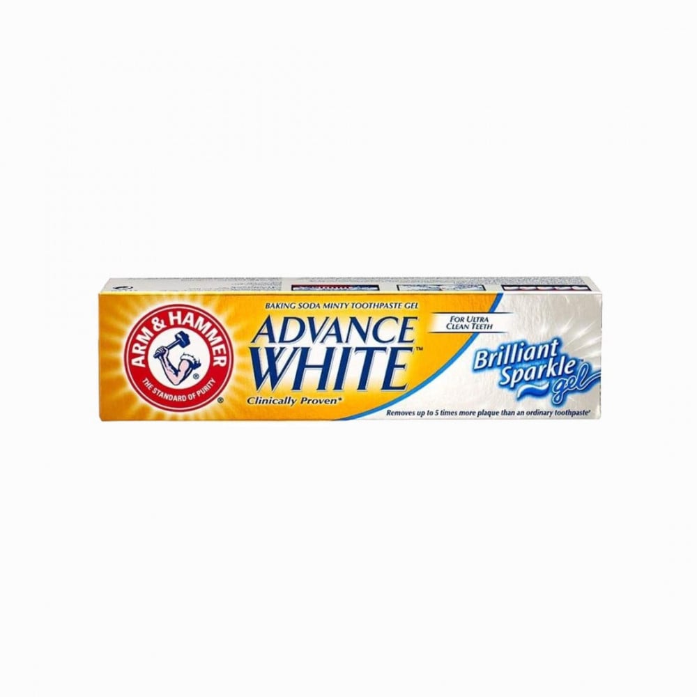 معجون أسنان آرم آند هامر أدفانس وايت بريليانت سباركل كريم مركب خصيصًا ليمنحك ابتسامة أكثر بياضًا وإشراقًا بشكل ملحوظ، مع توفير نضارة تدوم طويلاً. تساعد قوة صودا الخبز آرم أند هامر على تحييد المركبات المسببة لرائحة التنفس. أضف خصائص التحكم في الجير، والتي تساعد على الحماية من تراكم الجير في المستقبل، ويمكنك إظهار ابتسامتك بثقة. الفوائد: تبييض فعال ونضارة تدوم طويلاً، تنظيف عميق وفلورايد حماية تجويف الفلورايد والتحكم في الجير كيفية الاستخدام: استخدميه مرتين يومياً. غير مناسب للأطفال دون سن 7 سنوات.
