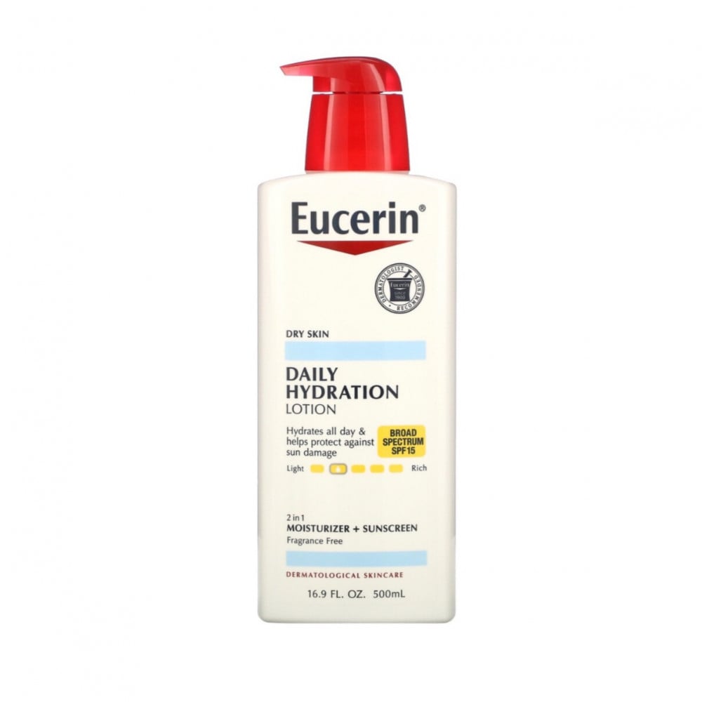 تقدم Eucerin®، مع أكثر من 100 عام من الابتكار في مجال العلوم الجلدية، مجموعة كاملة من الحلول المُثبتة سريريًا لتلبية عدد من احتياجات البشرة، مدعومة بالتزام صارم بالجودة. لهذا السبب ينصح أطباء الجلدية في جميع أنحاء العالم باستخدام Eucerin.دهان الترطيب اليومي من Eucerin® بمعامل حماية من الشمس 15 واسع النطاقتركيبة خفيفة لترطيب البشرة الجافة والمساعدة في حمايتها من حروق الشمس والأضرار الناجمة عن التعرض اليومي لأشعة الشمس.